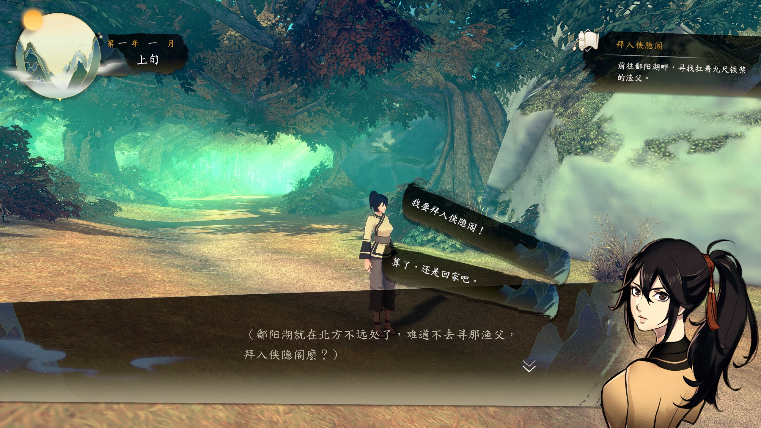 往前走,和小贩对话。选“无功不受禄”啥都没有,选肉饼增加一点体质,选菜包增加一点力量。